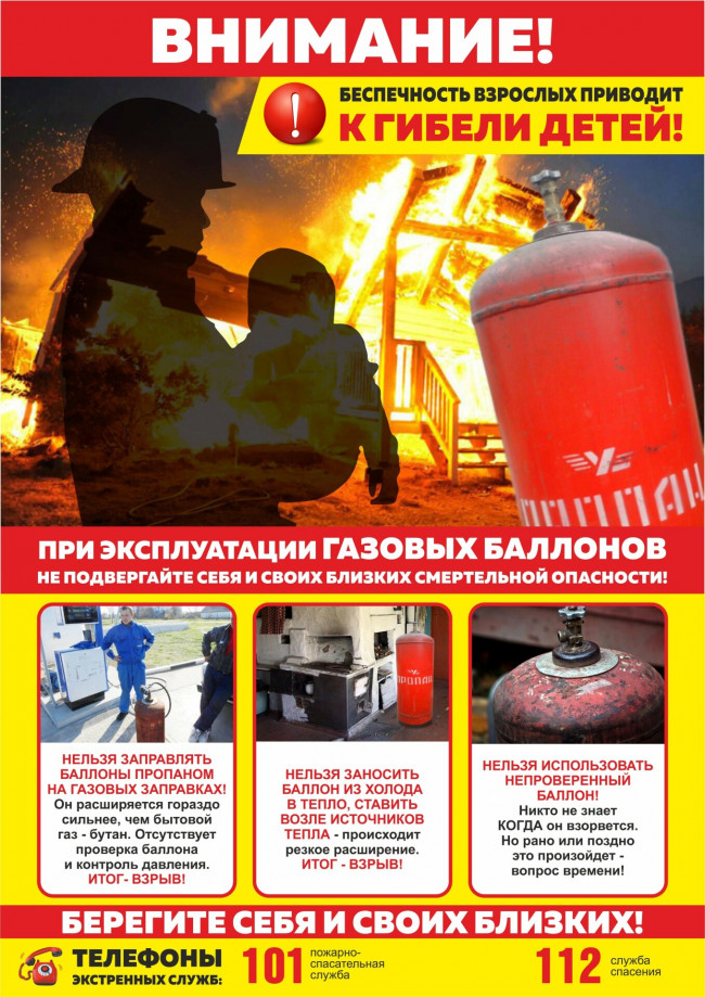 Особое внимание хотелось бы обратить на эксплуатацию газовых баллонов - их нельзя хранить дома и на балконах. Помните, что если полностью заправленный баллон с мороза перенести в тепло, газ расширится и неисправный сосуд может взорваться.