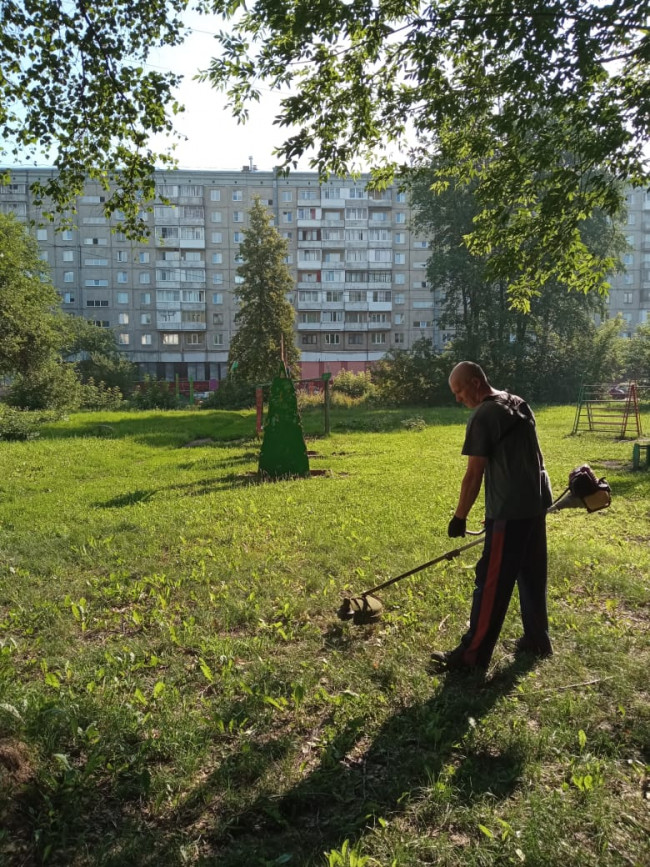 Покос травы на пр. Ленинградском 23Б и ул. Марковцева 12/1