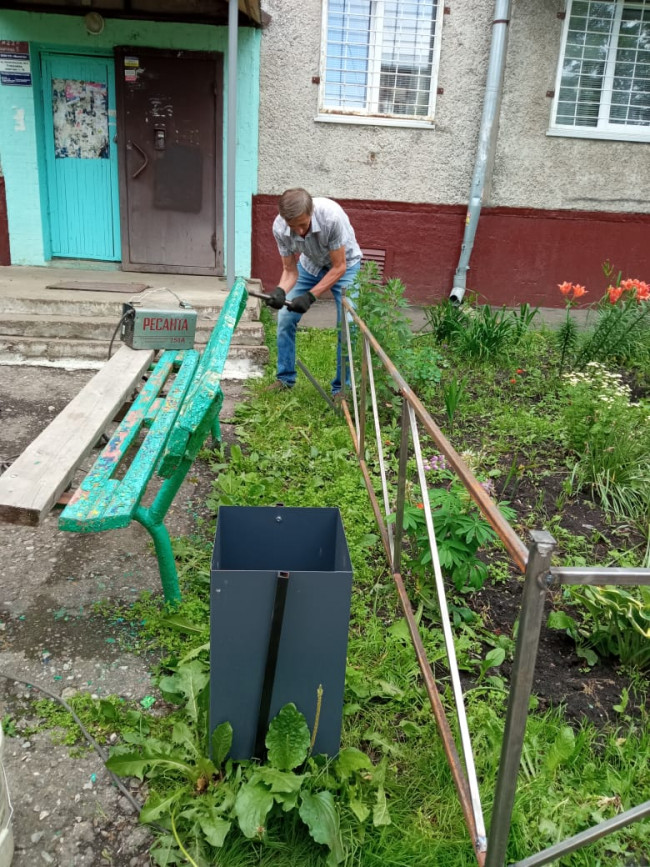Установка ограждения газона на пр. Ленинградском 23Б.